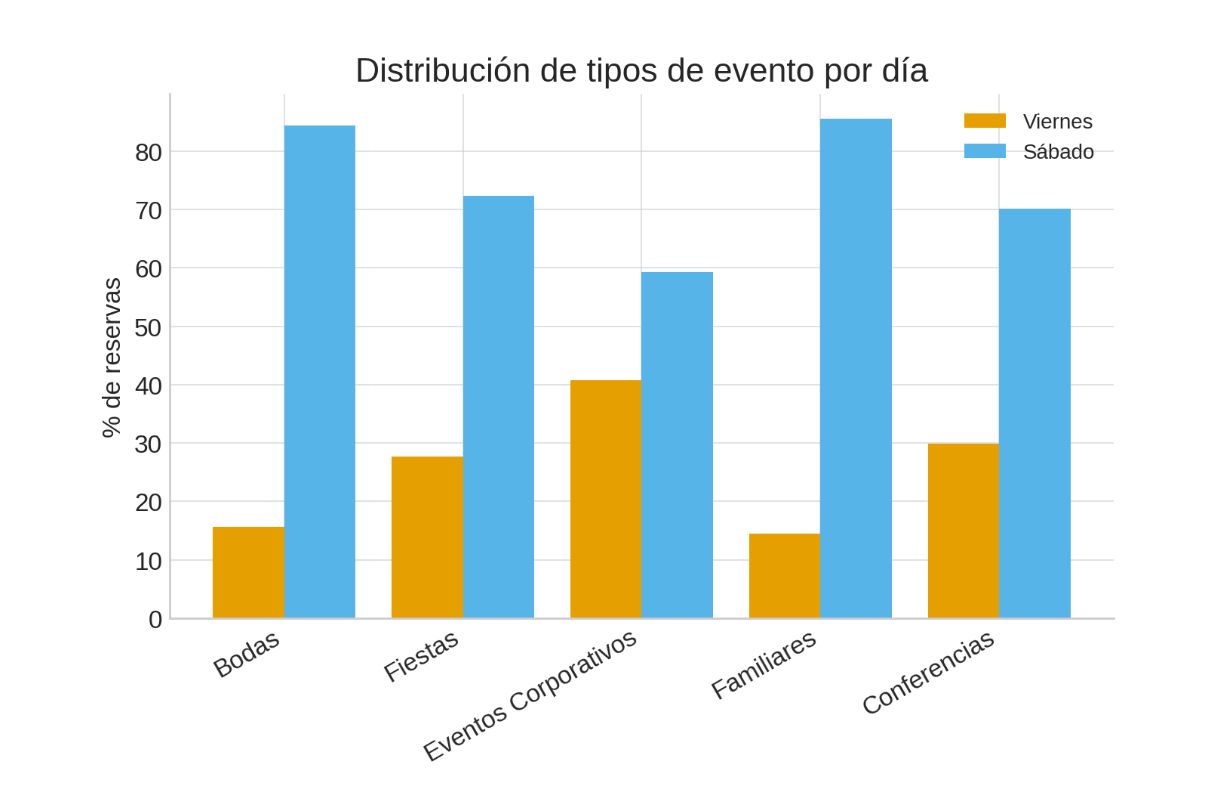 👉 ¿Se reservan más eventos los viernes o los sábados?