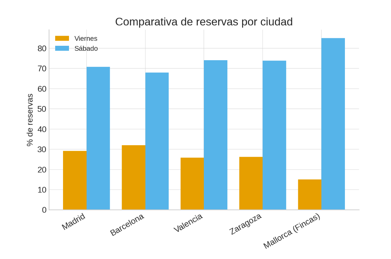 El 73,5% de todas las reservas del fin de semana se hacen el sábado, frente a un humilde 26,5% del viernes.