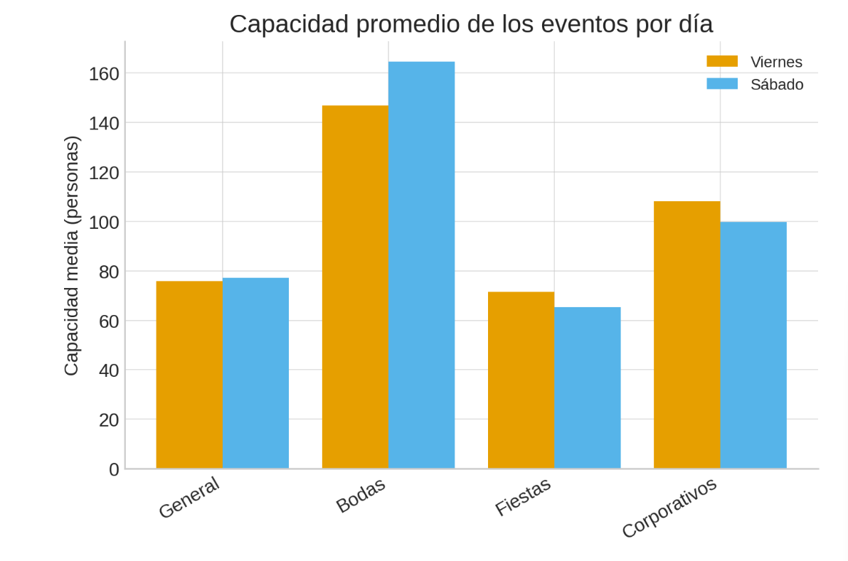 Los eventos sabatinos atraen más invitados, especialmente en bodas (donde el promedio sube un 12%).
